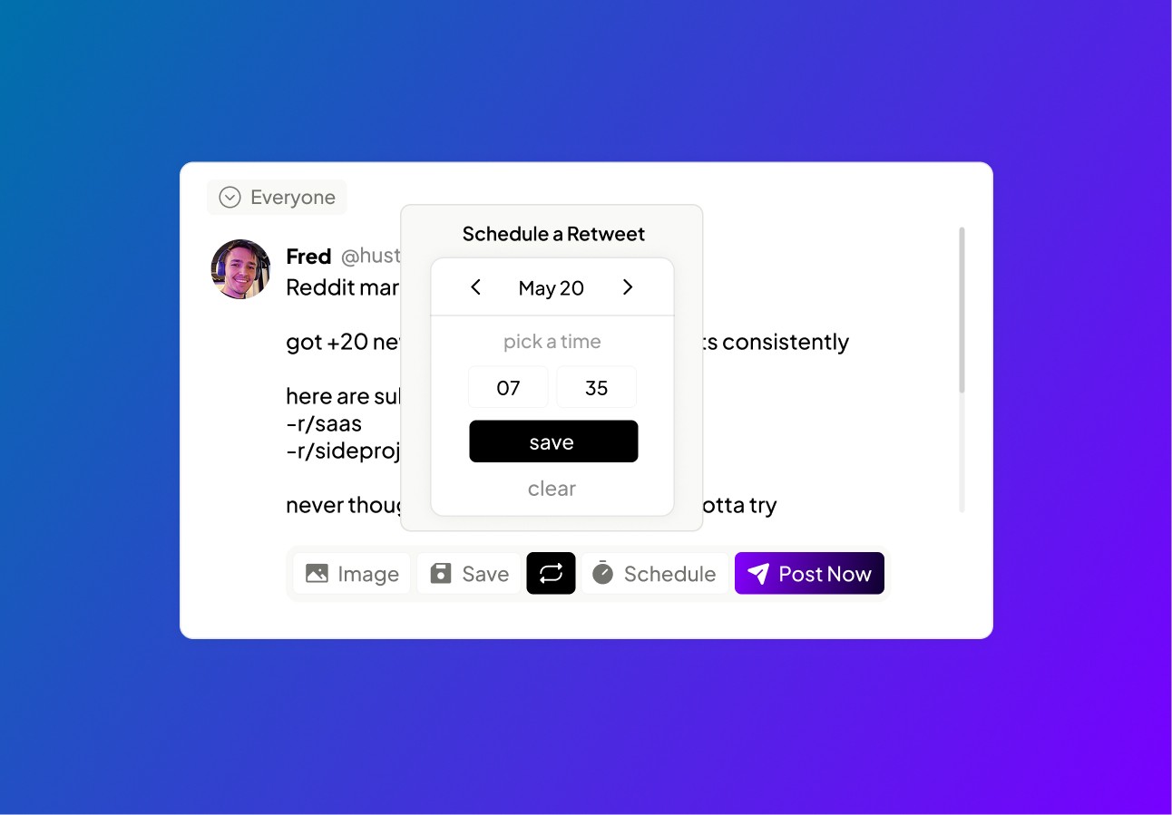Our calendar makes it super easy to schedule retweets for both published and scheduled posts